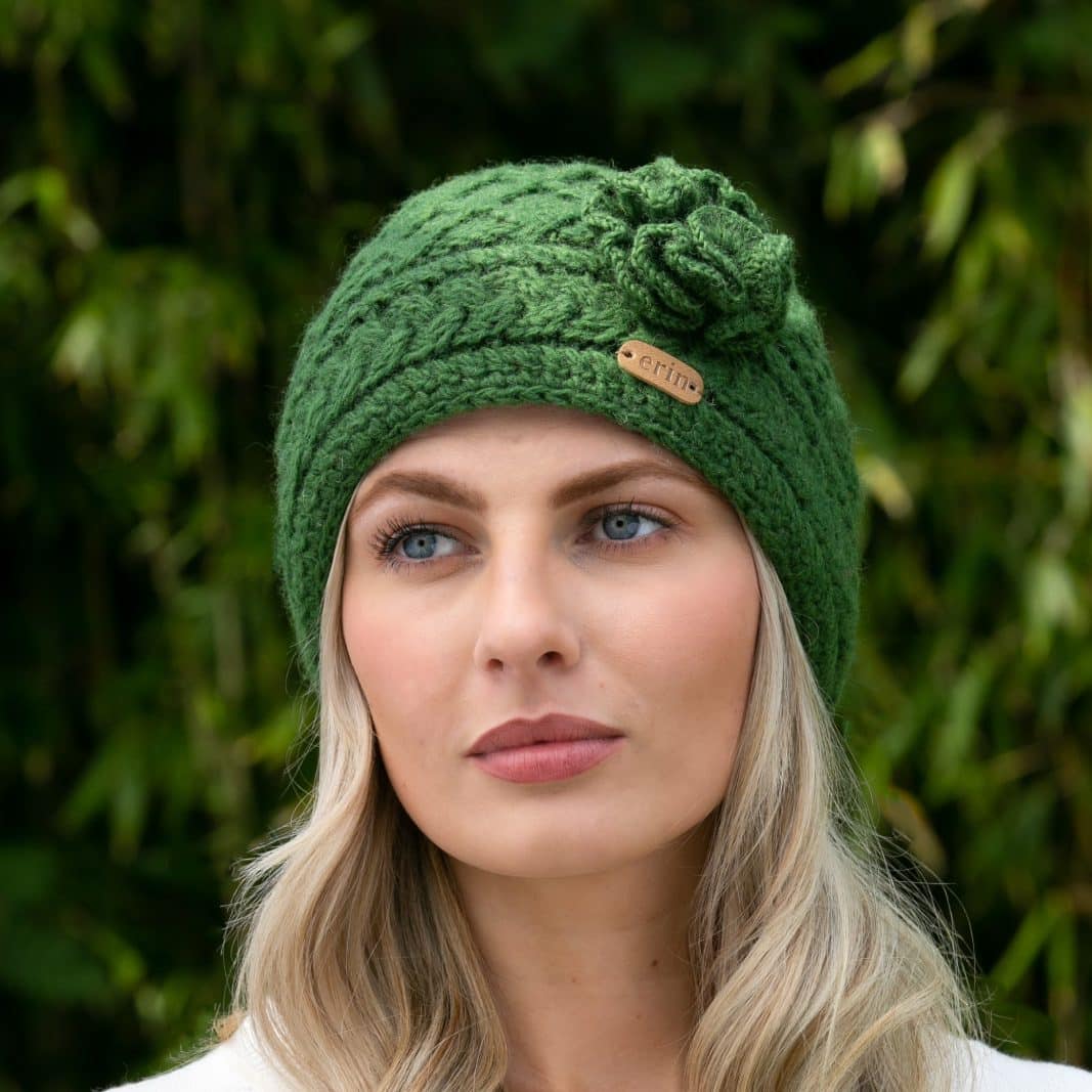 Our Aran Winter Trellis Beanie is the ultimate in cold-weather comfort and fashion. The high-quality wool exterior provides unbeatable insulation, while the plush fleece lining keeps you feeling cozy and warm. But the real standout feature is the delicate flower detail – it adds a stylish, eye-catching touch that will have everyone complimenting your winter look. Whether you’re running errands or hitting the slopes, this versatile accessory will keep you feeling and looking your best all season long.