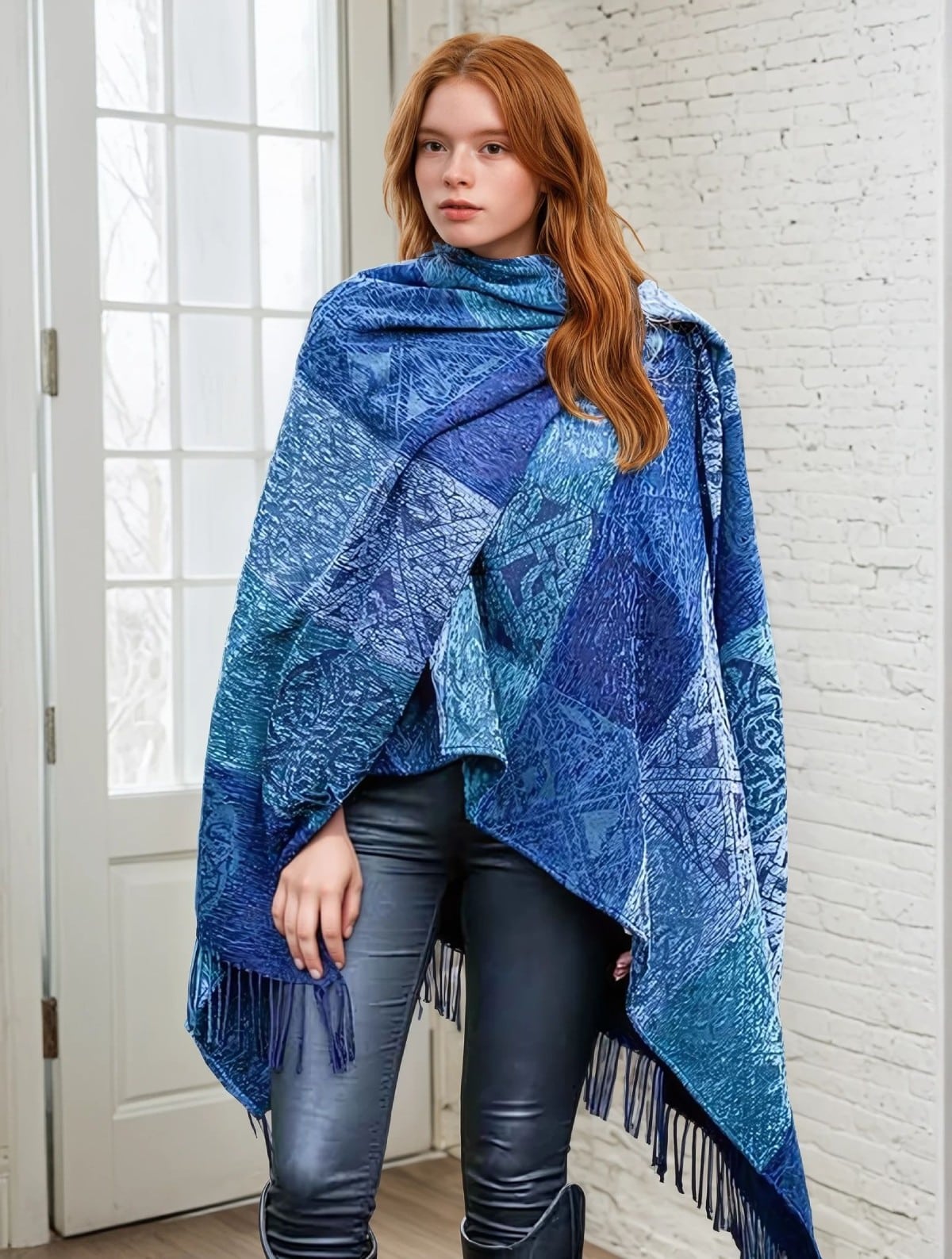The Celtic Knot Ruana Blue – is an authentic Scottish product exclusively designed and woven by Calzeat of Scotland. This Ruana consists of rich blues throughout. Comprised of a luxurious soft blend of Chenille and Pure New Wool, our Stirling Ruana is lightweight and perfect for any occasion.