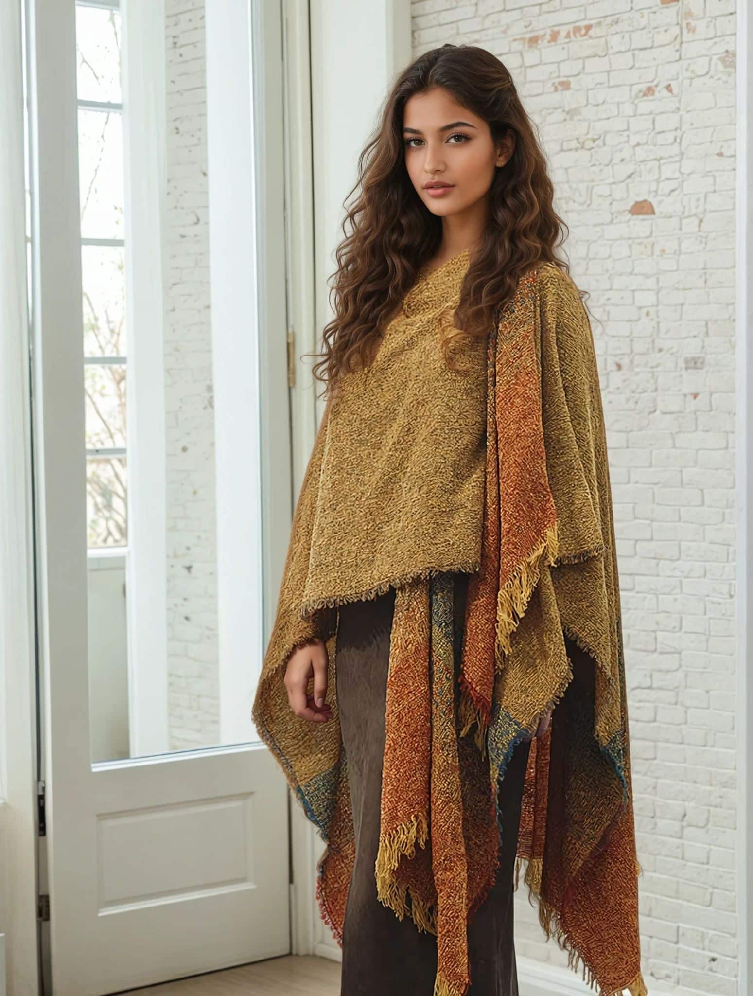 The beautiful Celtic Ruana Wrap – Gold will be a perfect addition to any wardrobe. It is a timeless and versatile garment which can be worn as a shawl, scarf, wrap, or cape. The wrap offers great warmth without compromising on style and elegance. The open-front design makes this Ruana easy to pair with other clothes you have in your closet. It is perfect for casual outings, office, social get-togethers, as well as cozying up on the couch with a good book on a chilly night. This item would make an ideal gift for someone special.
