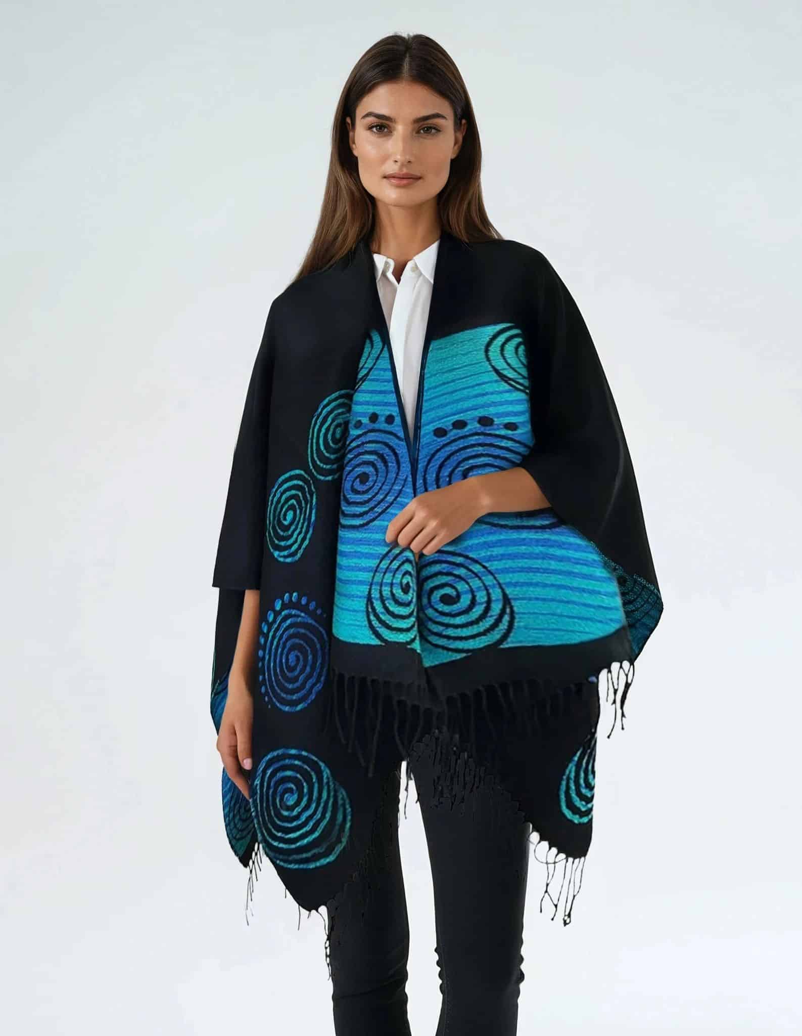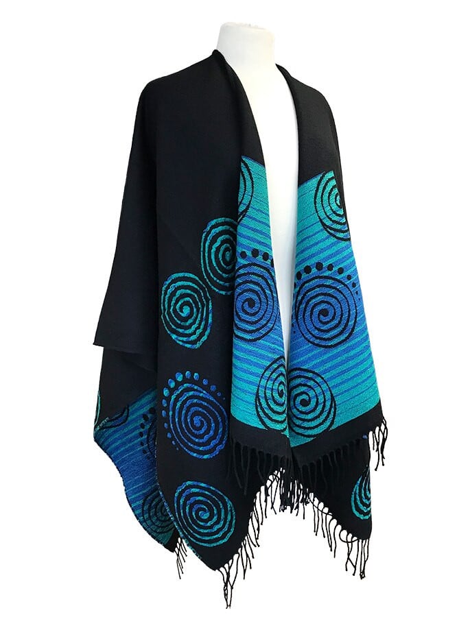 Wrap yourself in heritage and elegance with this luxurious Celtic Shawl — a timeless piece designed to celebrate culture, craftsmanship, and comfort in equal measure. Exquisitely woven on traditional Jacquard looms, this distinctive garment showcases the ancient Triskele — one of Ireland’s most revered Celtic spirals from the entrance stone at Newgrange — rendered in a striking chenille motif against a deep, velvet black. The result is a statement accessory that feels as meaningful as it looks sophisticated.