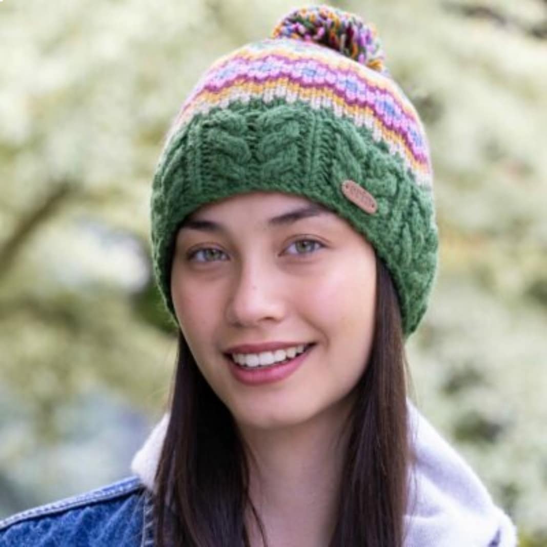 Discover the perfect blend of style and function with the Irish Bobble Beanie – Fairisle Green. The premium wool and cozy fleece lining will keep you toasty, while the classic Fairisle-inspired pattern adds a touch of timeless charm. Whether you’re braving the elements or simply running errands, this versatile accessory will keep you cozy and comfortable.