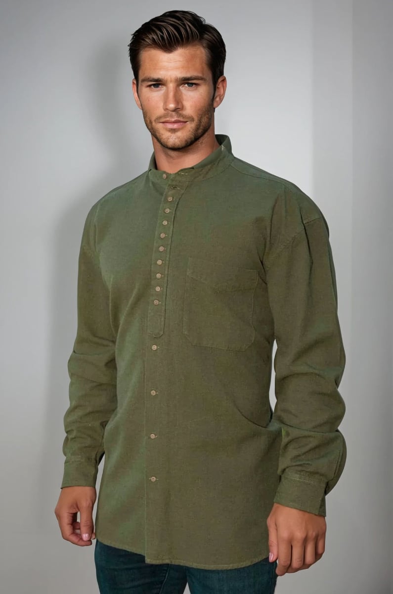 While a vestige of a bygone era, the Traditional Irish Grandfather Shirt remains every bit as stylish today as it was generations ago.  A versatile fashion accessory, these shirts are made with a time-honored fashion to create a unique and genuine style. Works perfectly with a men’s vest, and makes for a wonderful “boyfriend shirt”.  The shirt has a perfect balance of softness and durability.
